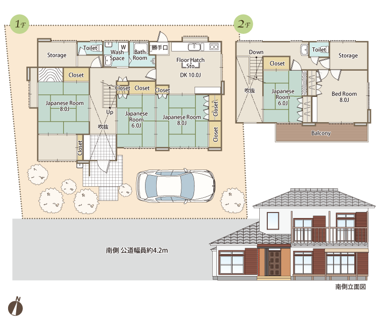 | 土地50坪超・陽当り良好♪全居室6帖以上、庭付き2階建のゆとりある住まい ●土地50坪超の整形地、駐車場1台付き、南向き・南道路に面し陽当り良好! ●全居室南向き6帖以上&納戸2箇所で収納完備の広々とした間取り ●吹抜けの明るい玄関で開放感あふれる空間♪ ●日当たりの良い南庭付きで、お庭時間を楽しみたい方に最適♪ 縁側に腰かけながら庭を眺める、四季を感じられる住まいです ●南面バルコニーで洗濯物もよく乾きます! ●浴室に窓があり、換気・採光も良好、トイレは2ヶ所あり、忙しい時間帯も安心 ●閑静な住宅街に立地し、落ち着いた住環境! ●小学校まで徒歩約7分で通学も安心 |