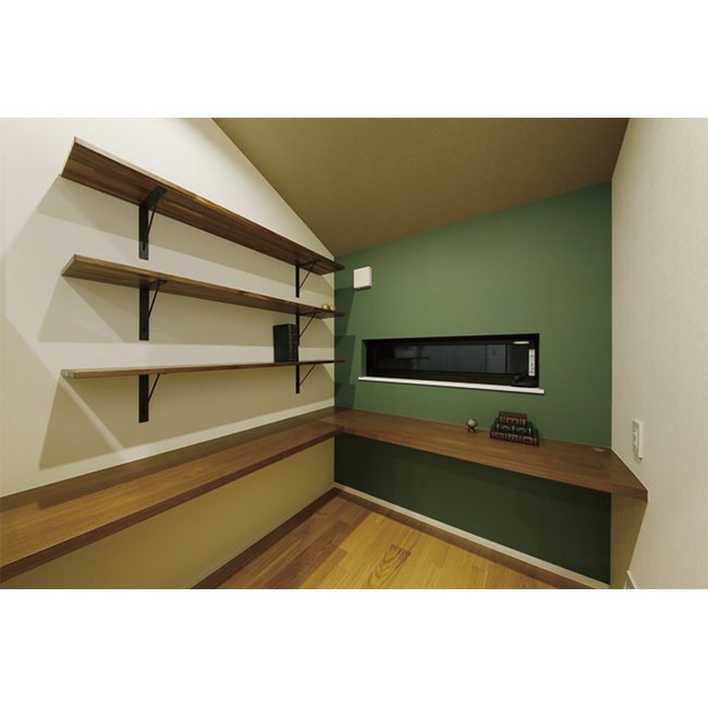 リビングインのひな壇階段は、階段側面が見えるように加工。和室の扉は、全体をオープンにして使えるようにL字型を特注。木製キッチンのダイニング側の壁には、床と同じ無垢材を使用。質とオシャレにこだわった理想のお住まい。